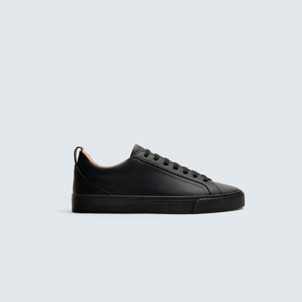 Sapatilha de atacadores básica. Parte superior lisa. Forma redonda. Forro interior em contraste. Sola com ligeira textura.