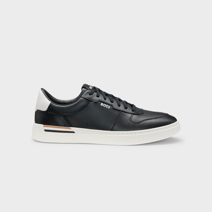 Com detalhes de listras características e logotipos contrastantes, estes tênis BOSS Menswear são uma opção casual diferenciada. Confeccionados em couro