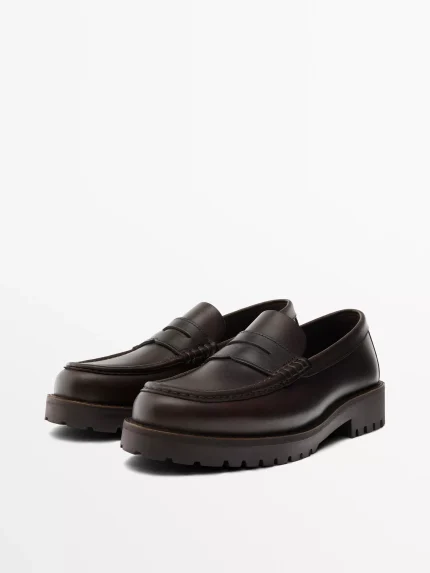 Leather loafers with penny strap