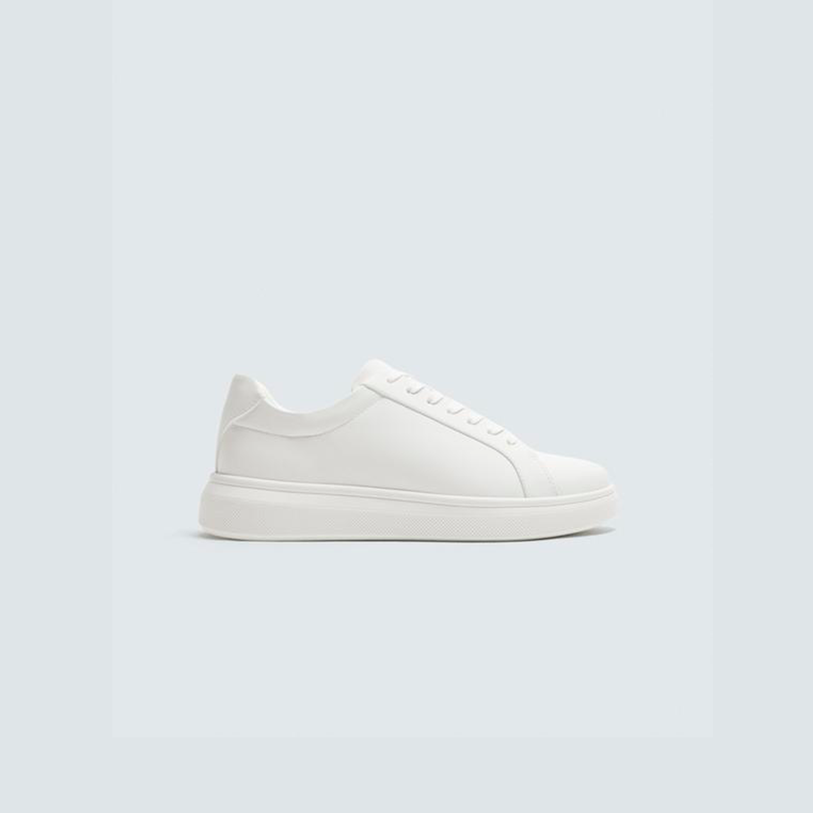Sapatilhas de atacadores monocolor. Parte superior lisa. Sola com volume.