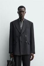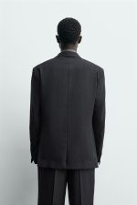 Blazer regular fit. Gola com lapela com pontas e manga comprida acabada em punho com botões. Bolsos de linha viva no peito e de aba na anca. Detalhe de bolso interior. Bainha com aberturas nas costas. Fecho frontal de abotoadura cruzada.