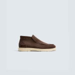 Bota casual fabricada em pele com acabamento em croute. Detalhe de rebordo no peito do pé. Forma redonda. Sola em contraste.