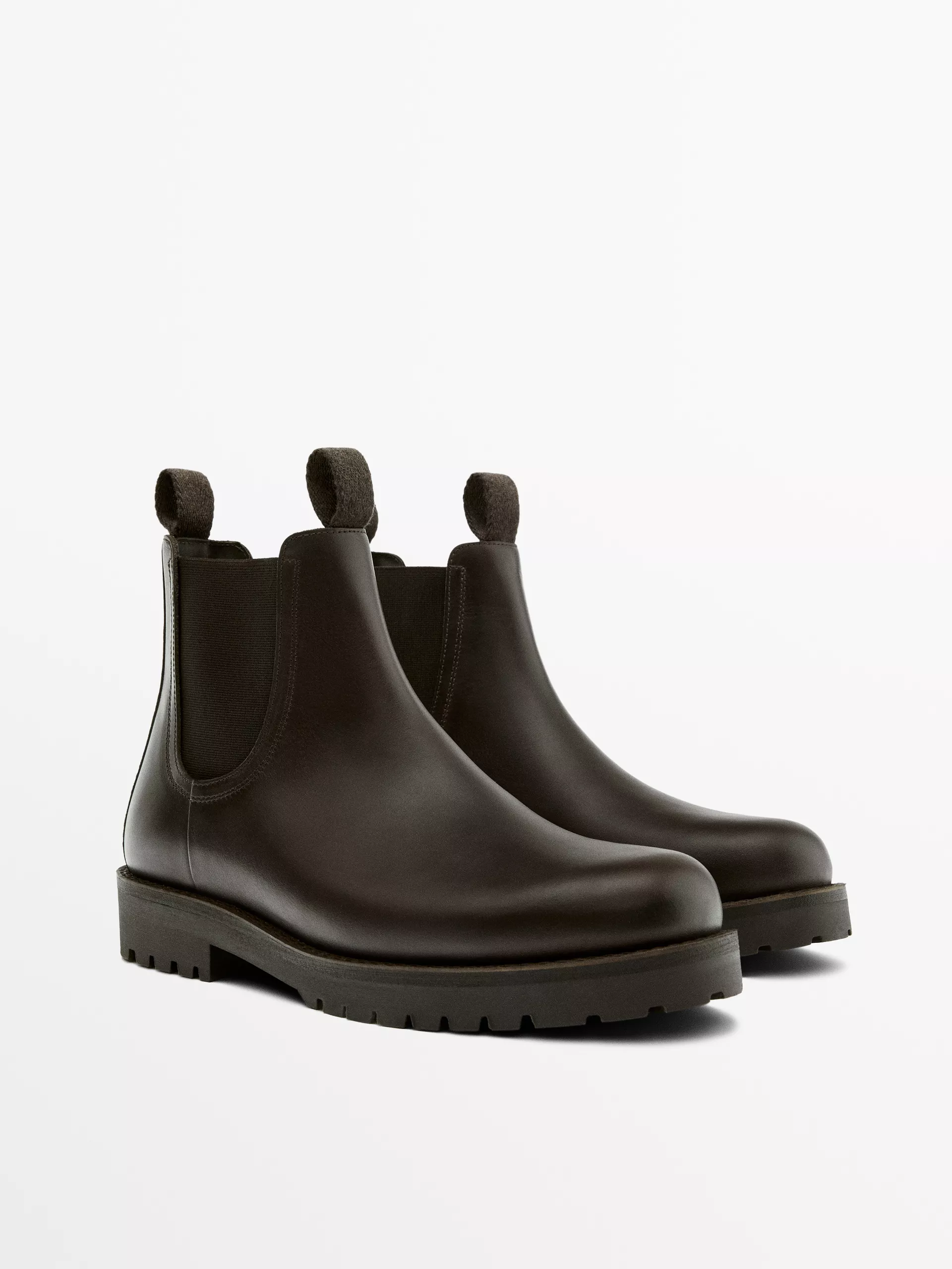 Botins Chelsea. Made of cowhide leather. Puxador traseiro para facilitar o calçar. Forro interior e base em pele . Pormenor elástico no cano. Sola com rasto. Fabricado em Portugal.