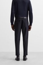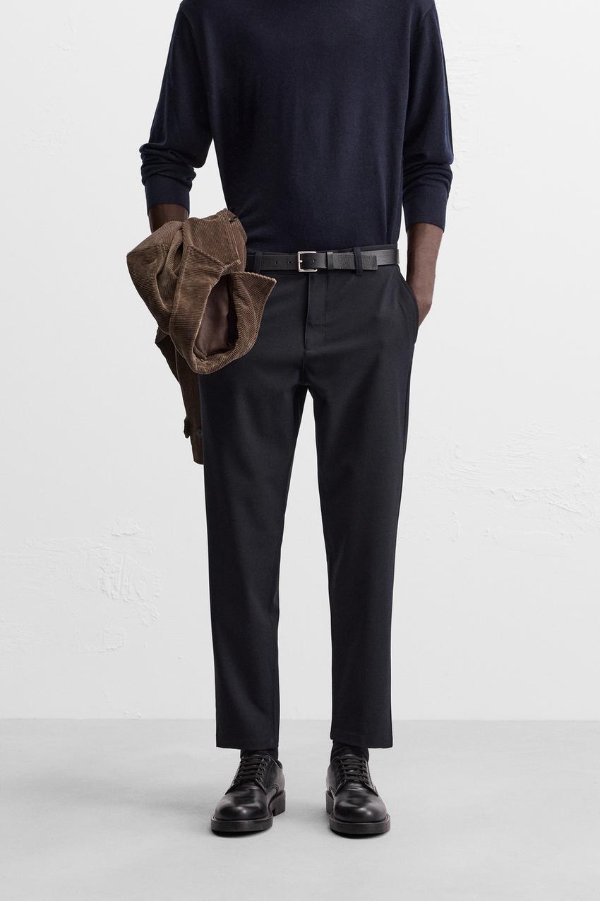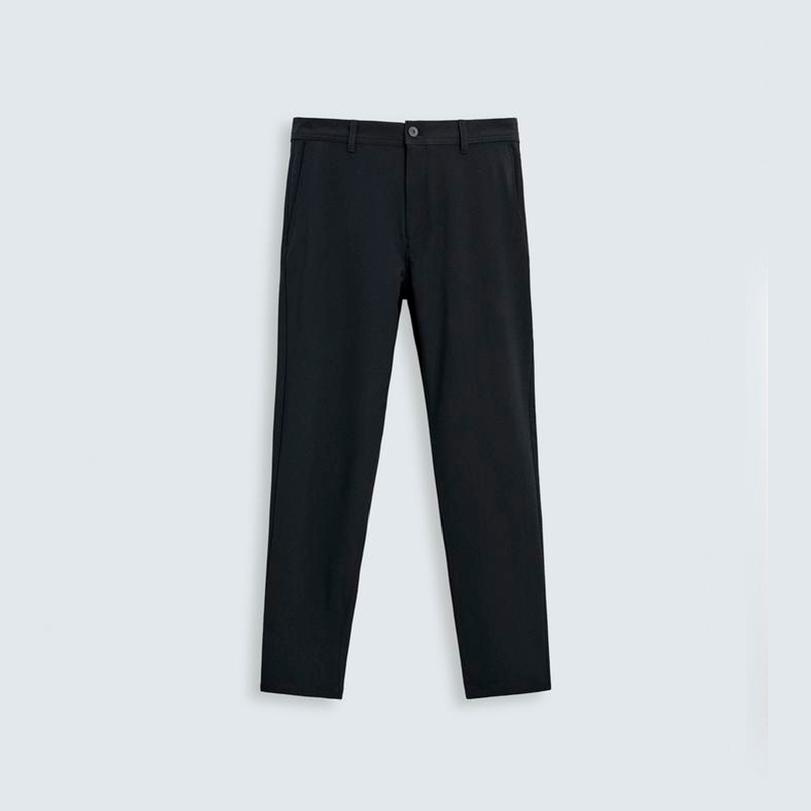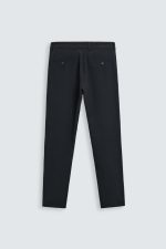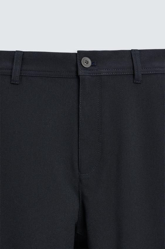 Calças slim fit confecionadas em tecido com elasticidade em ambas as direções. Bolsos à frente e detalhe de bolsos traseiros com vivos e botão. Fecho de correr e botão à frente.