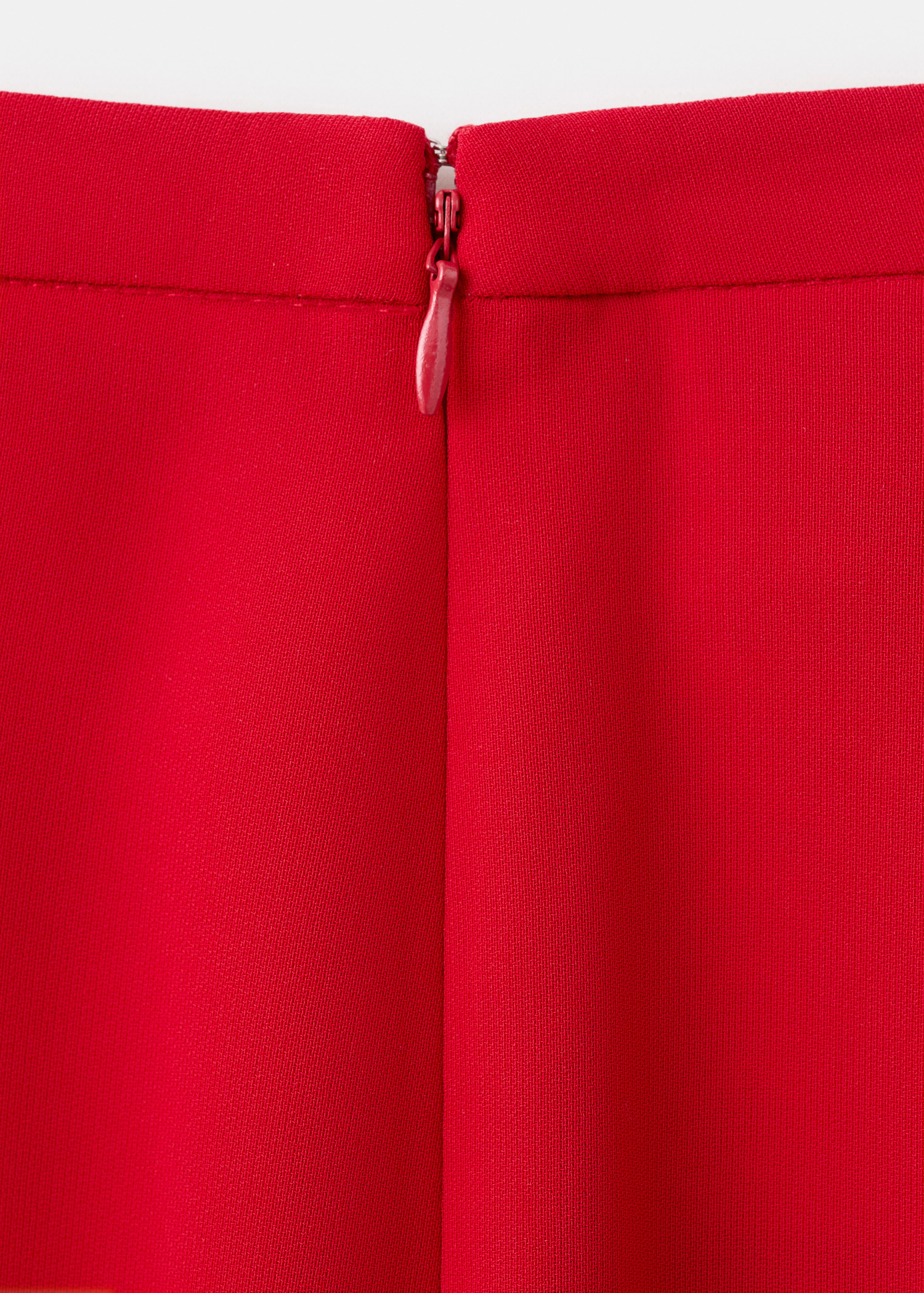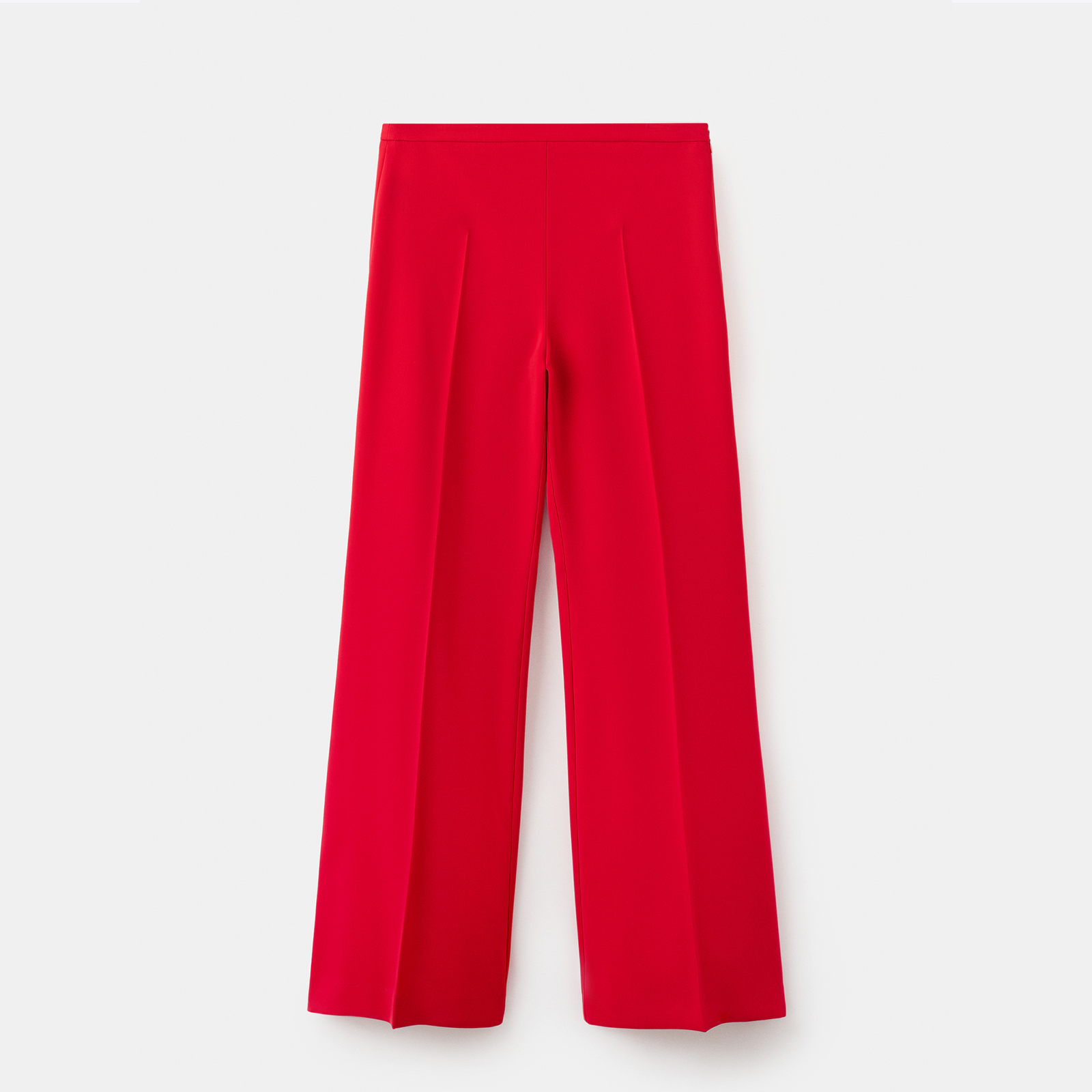 Estilo fato. Design comprido. Estilo boca de sino. Cintura alta. Fecho de correr lateral. Total look.