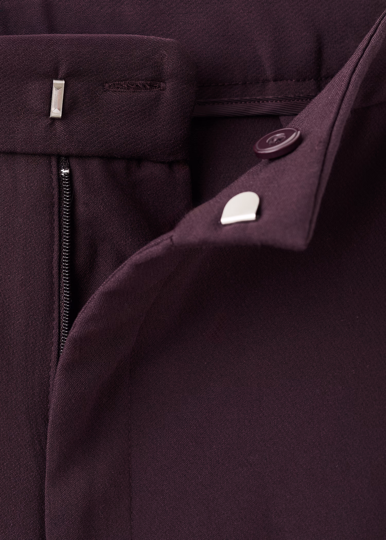 Design longo. Design reto. Cintura alta. Dois bolsos laterais. Fecho de botão oculto, gancho e fecho de correr. Forro interior. Disponível Plus.
