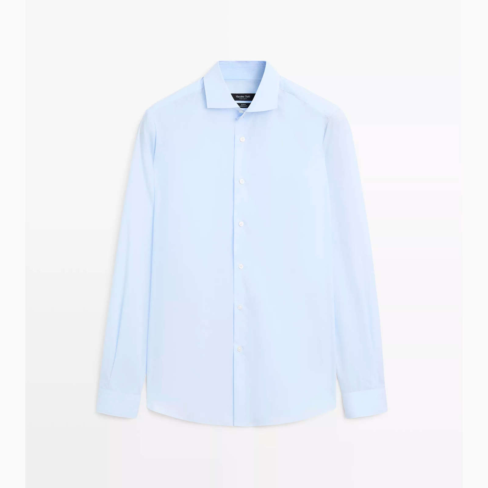 Camisa Slim fit: este corte apresenta uma silhueta ligeiramente justa ao corpo, cingida no tronco, ombros e nos braços, dando um aspeto mais definido e estilizado. Manga comprida com punho abotoado. Fecho por botões.