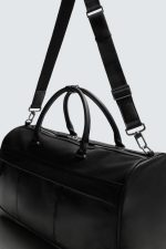 Mala de viagem com acabamento gravado. Compartimento principal com fecho de correr. O interior tem um bolso com fecho de correr. A parte da frente tem um bolso com fecho de correr. Duas alças de mão e uma alça de ombro ajustável e extraível.