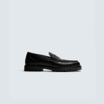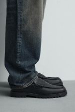 Mocassim de cerimónia. Parte superior lisa com pormenor de máscara. Forro e palmilha interior a condizer. Sola com rasto.