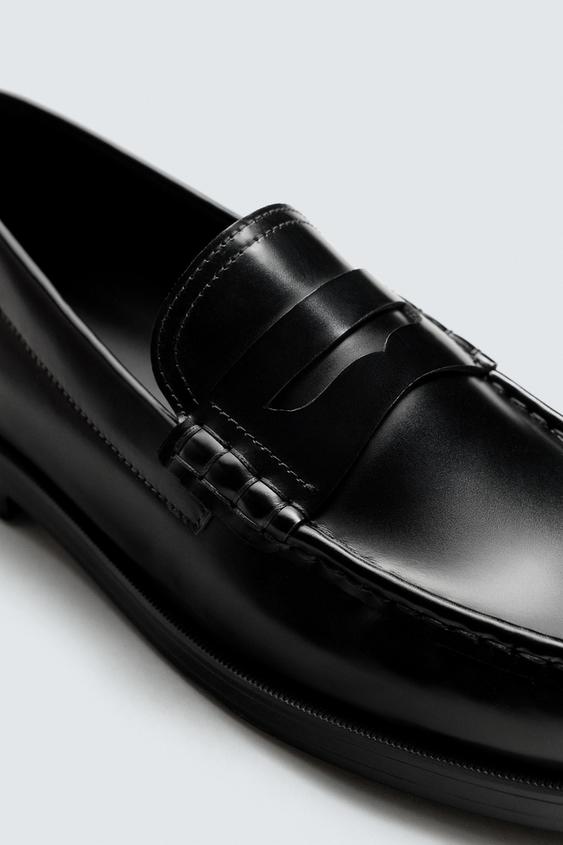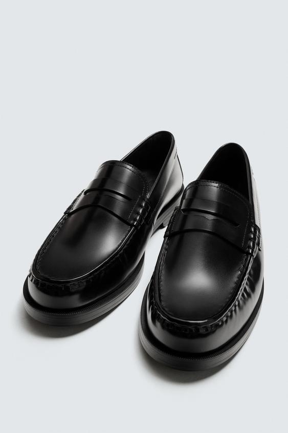 Mocassim de vestir. Parte superior fabricada em pele com acabamento brilhante. Palmilha interior fabricada em pele. Forma redonda. Sola com um pequeno tacão.