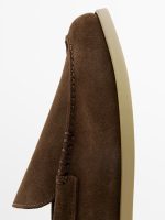 Fabricado em pele bovina com um acabamento em croute. Pele suave. Pormenor de borda . Forro interior e base em pele . Pespontos no tom. Sola a contrastar.