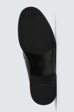 Mocassins de vestir. Parte superior lisa com pormenor de máscara. Forma redonda. Sola a condizer.