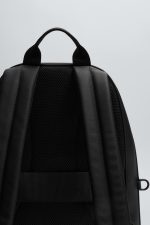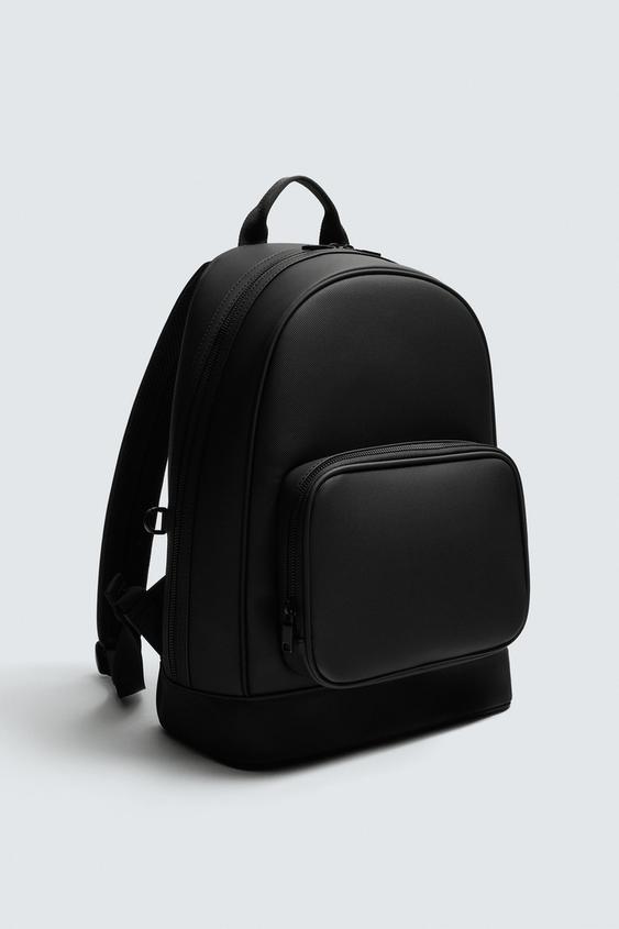 Mochila com acabamento gravado. Compartimento principal com fecho de correr. O interior tem um bolso com fecho de correr. Bolso frontal com fecho de correr. Parte de trás acolchoada com banda de fixação para bagagem. Alça de mão e duas alças de ombro ajustáveis e acolchoadas.