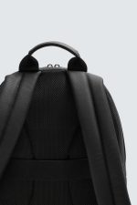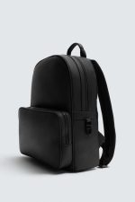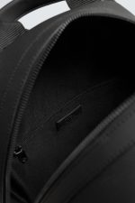 Mochila com textura e acabamento com efeito de caucho. Compartimento principal com fecho de correr. O interior conta com um bolso com fecho de correr. A parte da frente conta com um bolso com fecho de correr. Dispõe de uma alça de mão e duas alças de ombro ajustáveis. Parte posterior acolchoada e com banda de fixação para bagagem.