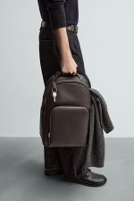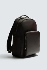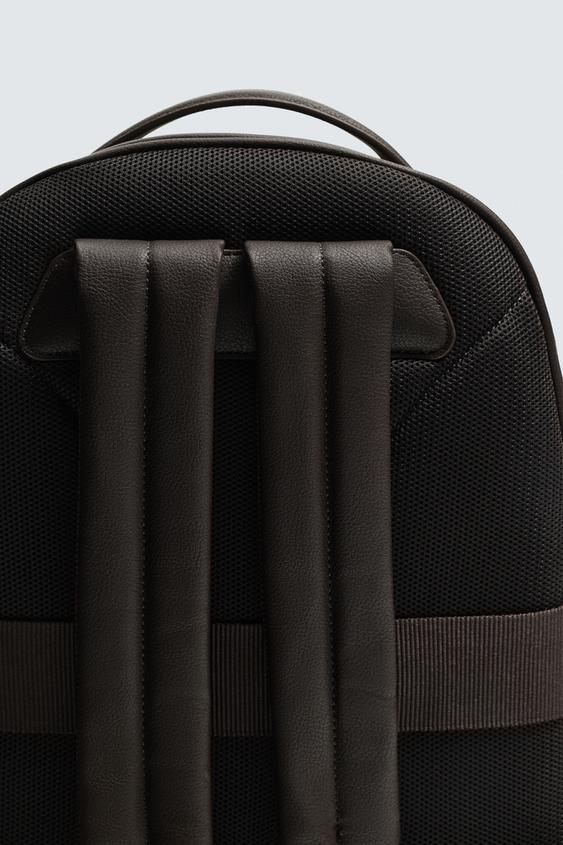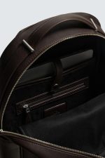 Mochila com acabamento gravado. Compartimento principal com fecho de correr. O interior tem um espaço para dispositivos eletrónicos de até 13 polegadas e um bolso com fecho de correr. A parte frontal tem um bolso com fecho de correr. Parte posterior acolchoada