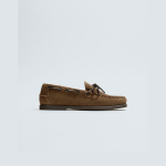 Sapato tipo náutico. Parte superior fabricada em pele de alta qualidade com acabamento croute. Atacadores fabricados em pele. Forro interior e palmilha fabricados em pele. Forma redonda. Sola em contraste.
