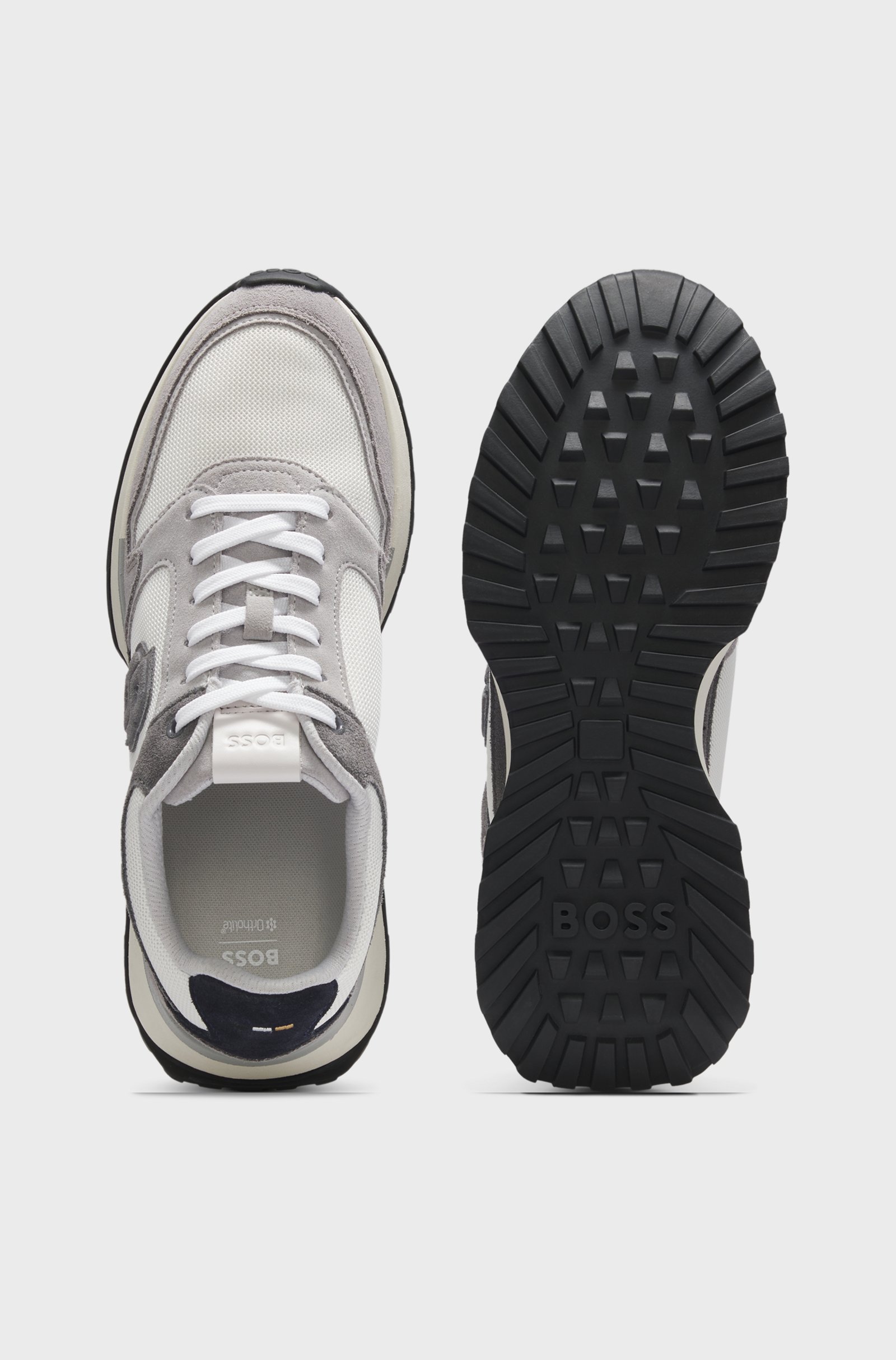Com um monograma Double B exclusivo, estes tênis BOSS Menswear complementam qualquer look. Confeccionados em mesh respirável com detalhes em camurça de alta qualidade. Solado leve em borracha EVA.