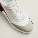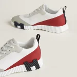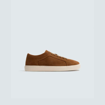 Tênis em couro de bezerro e camurça de cabra.